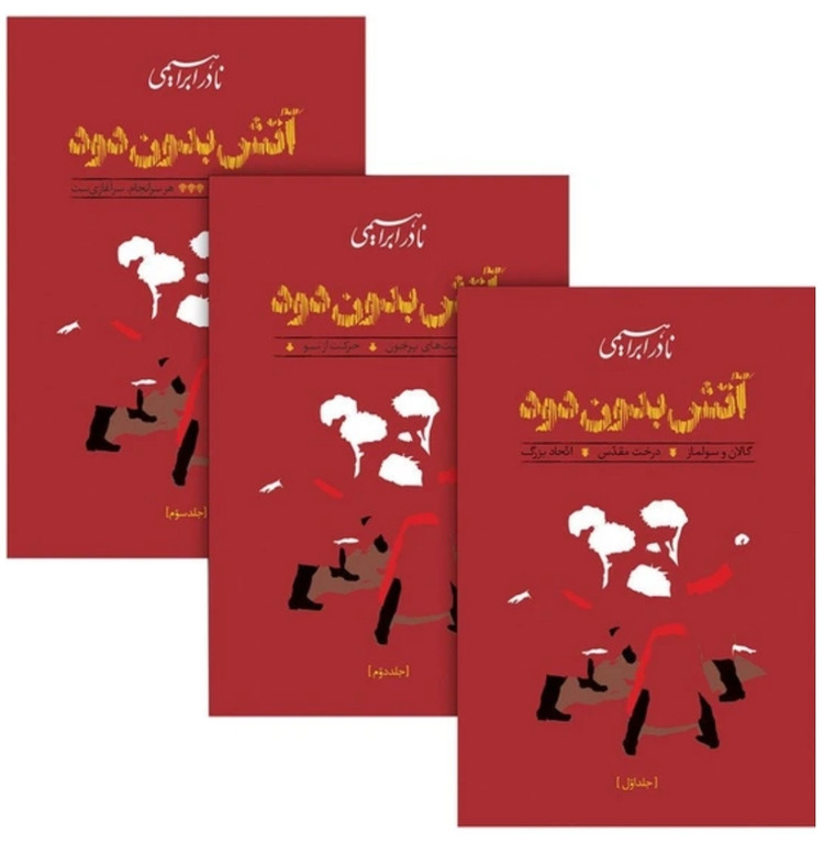کتاب آتش بدون دود / اثر نادر ابراهیمی / نشر روزبهان / دوره ۷ جلدی در ۳ مجلد / جلد شومیز