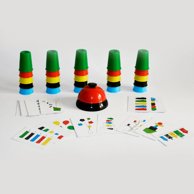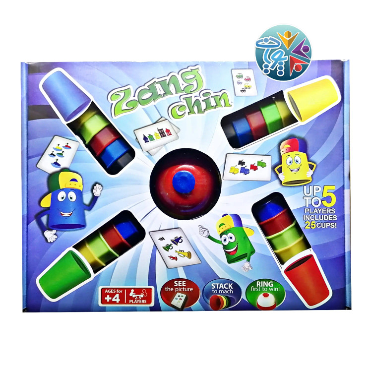 بازی فکری زنگ چین یا دست چین 5 نفره : بازی فکری زنگ چین سرعت عمل و توانایی های شما را آزمایش می کند. بازیکنان باید هرچه زودتر لیوانهای خود را مانند تصاویر روی کارت ها بچینند. هر بازیکنی که زودتر بتوانند 5 لیوان خود را بطور صحیح قرار دهد، برنده آن دور از بازی دست چین خواهد بود. برنده بازی کسی خواهد بود که کارت های بیشتری جمع کرده باشد. این بازی به صورت 2 تا 5 نفره قابل انجام می باشد و باعث افزایش اعتماد به نفس و کنترل هیجان می گردد. اهداف بازی : تقویت سرعت عمل بهبود اعتماد به نفس ارتقاء تمرکز کنترل هیجان محتویات بسته : یک عدد زنگ 25 عدد لیوان کارتهای بازی