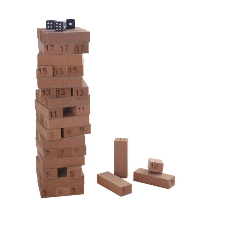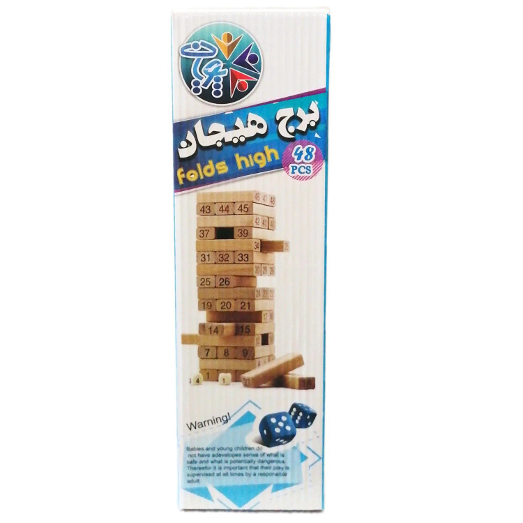 بازی معروف برج هیجان یا جنگا با 48 بلوک از جنس ام دی اف برای گروه سنی بالای 5 سال طراحی شده است. این بازی به سه شیوه مختلف قابل انجام است. علاوه بر خود بازی اصلی جنگا، امکان استفاده از چوب های بازی برای بازی دومینو و ایجاد انواع ساختنی های خلاقانه نیز وجود دارد. این بازی مهیج گروهی به سه صورت قابل اجرا است : (روش اول) هر نفر به صورت دلخواه یکی از مهره ها را انتخاب و با یک دست آن مهره را از جای خود خارج کرده و بر روی برج قرار می دهد این کار به صورت نوبتی ادامه پیدا می کند ،کسی که باعث ریزش برج شود بازنده بازی است . (روش دوم) در این روش انتخاب مهره با استفاده از تاس صورت می گیرد . تاس عدد دار : جمع اعداد تاس انداخته شده همان مهره ای می شود که باید از برج خارج و بر بالای برج گذاشته شود. کسی که باعث ریزش برج می شود بازنده بازی است. (روش سوم) در این روش همه چوبها به فواصل معین مانند دومینو بر روی زمین چیده میشوند و با برخورد اولین چوب به دومین چوب، همه چوبها پشت سرهم میریزند و صدای بسیار جذابی تولید می کند. همچنین می توان با قطعات چوبی، سازه های متنوع و خلاقانه درست کرد.